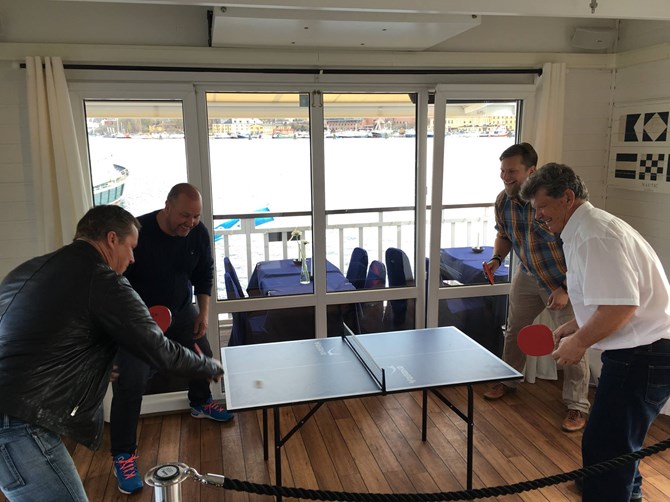 最近几天我参加了很多愉快的会面。这周末我与一位老朋友,乒乓界的传奇人物Mikael Appelgren打了一场表演赛。这场比赛很激烈,因为我们双方都非常地渴望胜利。我很喜欢这样的活动,特别是由这种希望与其合作伙伴和员工一起参加娱乐活动的公司所举办的活动,它们通常都很刺激和有趣!