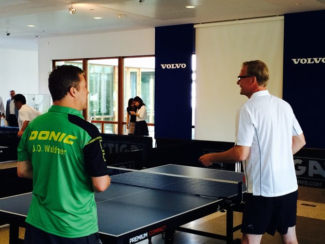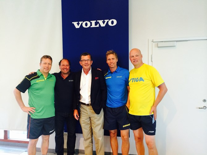 我在休假期间去了很多地方旅游并度过了一个愉快的夏天。不过在这个周末我参加了一场沃尔沃公司举办的活动。在那里,我和我的乒乓球好哥们约尔根•佩尔森还有Ulf Carlsson与非常友善的活动赞助负责人Tony Larsson和沃尔沃公司的”大老板”首席执行官Olof Persson一起打球,展开了一场有趣的赛事。Olof的球技很精湛,而且他的正手击球非常棒!我很期待参加更多沃尔沃公司在中国和瑞典举办的活动!