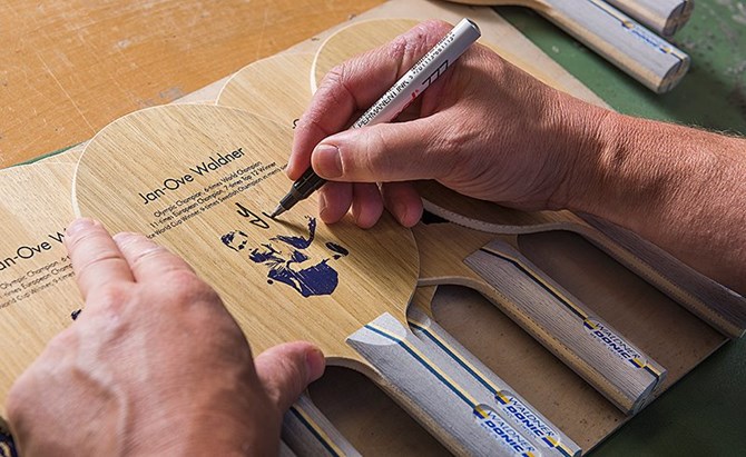 今天我为签署为奥运会特制的球拍访问了我的赞助商多尼克。多么精致的工艺!我与生产球拍的Woodhouse公司总裁Thomas Berner托马斯•伯纳一同参加了活动。