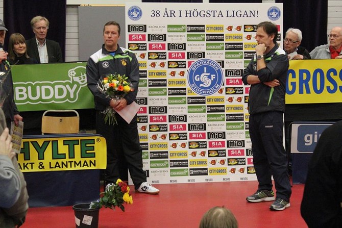 我的队伍Spårvägen BTK Spårets vänner取得了昨天比赛的胜利。这让我们成功晋级到了瑞典乒乓超级联赛的淘汰赛。这是我与米克尔•阿佩伊伦(Mikael Appelgren)在比赛之后的照片。我们的共同好友安德斯•林帕(Anders Limpar)也来到了比赛现场,为我们的队伍加油助威!