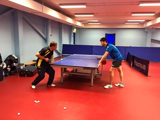 今天我跟迪米特里·奥恰洛夫(Dimitrij Ovtcharov)一起参加了训练。为有轨电车-铁道好友俱乐部 (Spårvägen BTK - Spårets Vänner)。