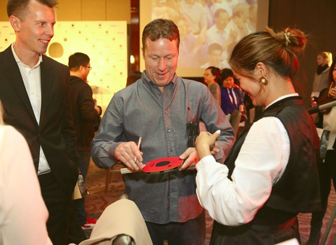 我与热情的访客们和宜家公司的管理人员们一起打了乒乓球。来访的人们不计其数,我坐下来与大家签名留念的环节就进行了几个小时!