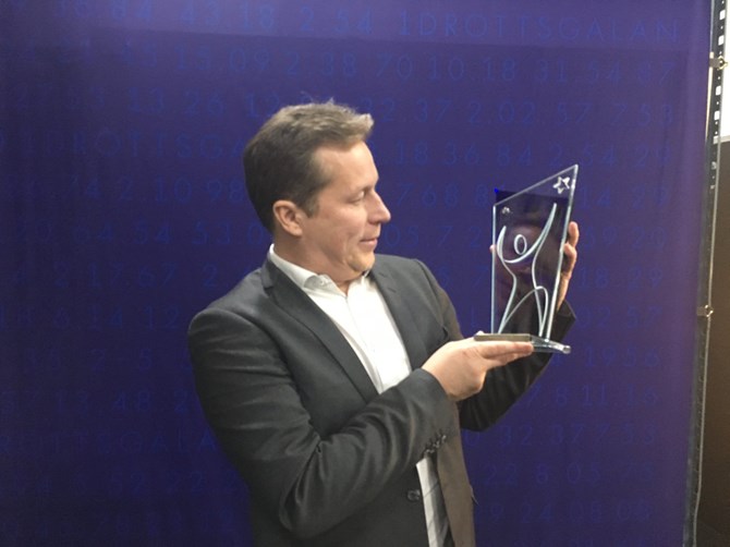 我获得了今年瑞典体育晚会颁发的荣誉奖,很感激!为自己感到自豪!